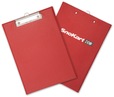 An A4 PVC clipboard available plain next-day or with a screen or full colour transfer print on the back in 8-10 working days. Ideal for holding loose papers while writing on the move.