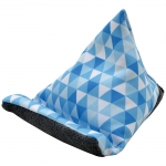 A triangular polyester bean bag phone stand with a full colour all over print. This soft and lightweight but stable stand is an attractive desktop accessory perfect for propping up a mobile phone. Ideal for safely storing a device that is not in use and as a hands-free means of holding a phone (vertically or horizontally) while watching/reading something or making a video call.