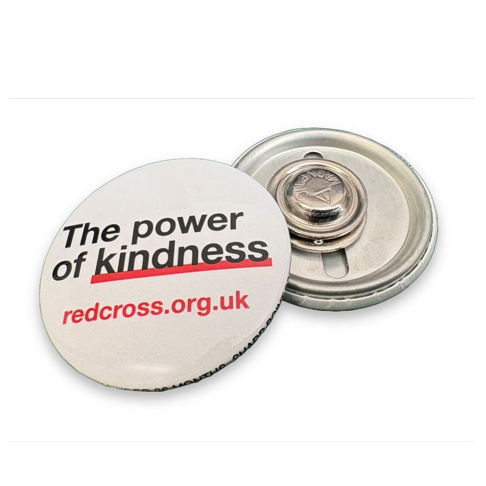 A high-quality UK-made button badge with a pantone matched screen print or full colour process print on 1 side. The design is printed on recycled paper and protected with a gloss laminate finish.