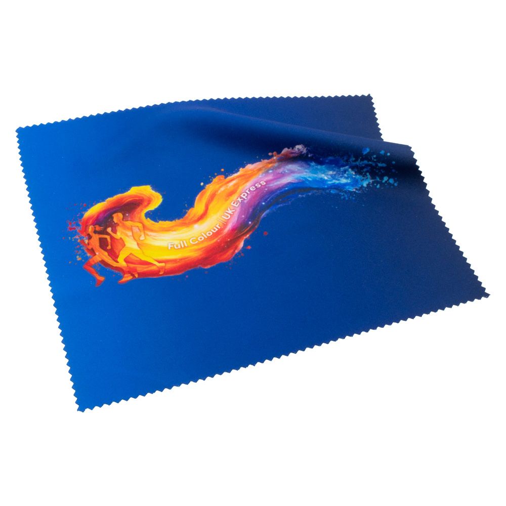 A UK stocked and printed 190g large microfibre cleaning cloth with zigzagged edges printed full colour all over on 1 side. This soft but durable cloth provides an effective and scratch-free way to remove dust and dirt from lenses (glasses/sunglasses) and screens (phones/tablets/laptops) along with all sorts of different delicate items.